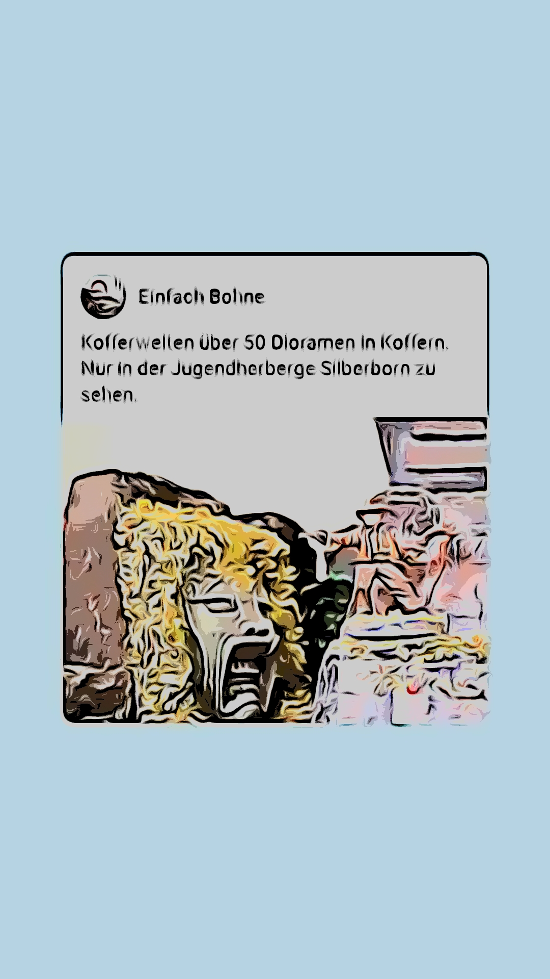Entdecke in über 50 Koffern fremde und vertraute Welten im Maßstab 1:56. Erstmalig sind alle Koffer in einer kleinen Ausstellung seit der RETRO CON vom 16.09. bis 19.09.2022 in der Jugendherberge Silberborn zu sehen. Was Du auf dieser Seite siehst ist nur ein kleiner „Ausschnitt“ ….