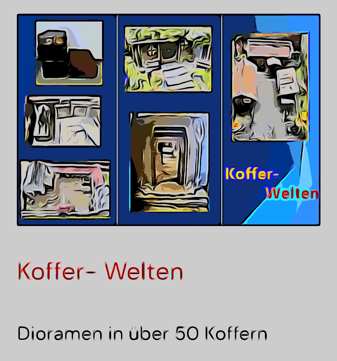 Entdecke in über 50 Koffern fremde und vertraute Welten im Maßstab 1:56. Erstmalig sind alle Koffer in einer kleinen Ausstellung seit der RETRO CON vom 16.09. bis 19.09.2022 in der Jugendherberge Silberborn zu sehen. Was Du auf dieser Seite siehst ist nur ein kleiner „Ausschnitt“ ….